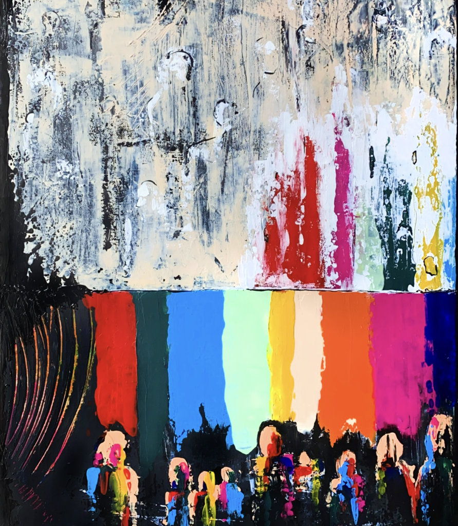 In my paintings, I use bold colors and dynamic compositions to evoke a sense of movement and rhythm. My process of painting is both playful and profound. I am committed to pushing the boundaries of my creativity. Finding freedom in abstraction, it allows me to explore the complexities of my identity, my cultural heritage, and the sense of contradiction that has shaped much of my life.